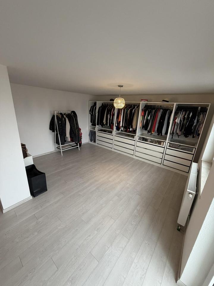 Das Obergeschoss bietet fünf flexibel nutzbare Zimmer und damit optimale Voraussetzungen für unterschiedlichste Wohnbedürfnisse. Hier lassen sich Schlafräume, Kinderzimmer, Gästezimmer oder Home-Office-Lösungen perfekt kombinieren. Der besondere Schlafbereich mit eigener Ankleide und Balkon schafft ein angenehmes Maß an Privatsphäre. Das stilvolle Masterbad mit Badewanne und begehbarer Dusche sorgt für zusätzlichen Wohnkomfort. Ein weiterer Raum eignet sich hervorragend als Bügelzimmer oder zusätzliche Abstellfläche.