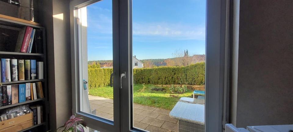super schöne 1-Zi Wohnung im EG mit eigener Wiese, großer Terasse, abgetrennt mit schöner Hecke.