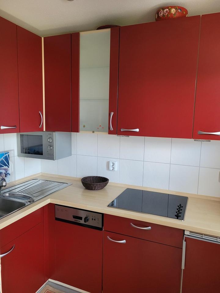 – Einbauküche mit Ceranfeld, Kühlschrank, Geschirrspüler, Mikrowelle