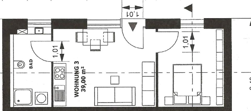 Die 2-Zimmer-Wohnung befindet sich im Erdgeschoss eines Mehrfamilienhauses mit 5 Wohneinheiten – gelegen nach vorne zum Kremper Weg. Sie verfügt über ein Wohnzimmer, ein Schlafzimmer sowie ein Badezimmer mit Dusche/WC.