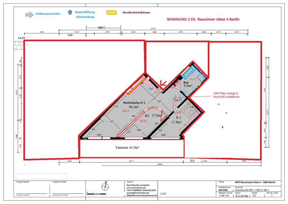Die Wohnung befindet sich in der finalen Phase einer Vollsanierung. Folgende hochwertige Ausstattungsmerkmale erwarten Sie: