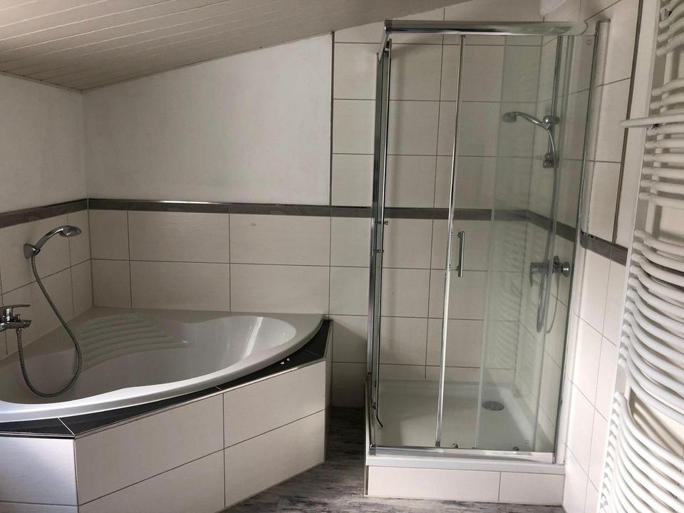 •Großes Tageslichtbad mit Badewanne, Dusche und WC