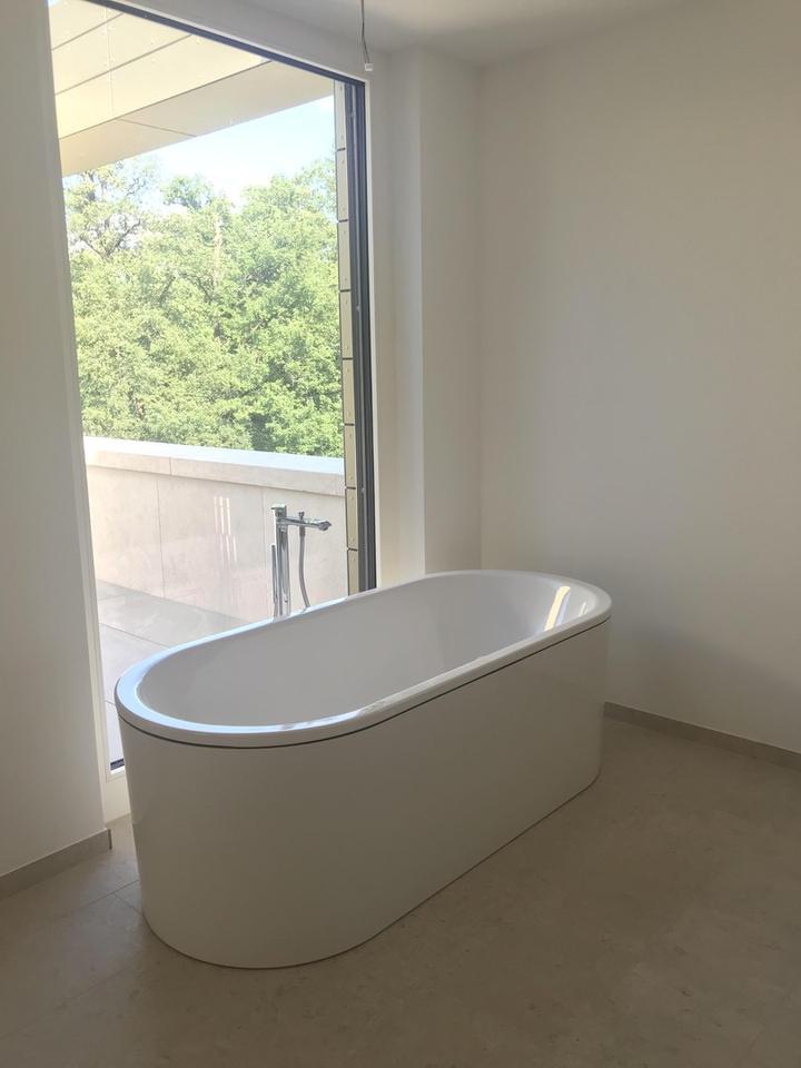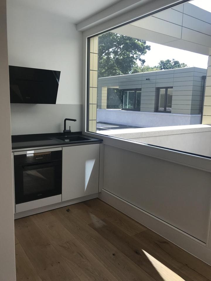 Interessenten erwartet eine Immobilie der besonderen Art. Die hier angebotene 3-Zimmer Penthousewohnung überzeugt mit einem attraktiven Grundriss, hellen Räumen und einer hochwertigen Ausstattung wie: zwei schöne Dachterrassen, eine mit Ausblick auf dem Wald, sehr großzügiges Tageslicht-Bad mit freistehender Badewanne, Dusche und direktem Zugang zur Dachterrasse vom Bad aus, SieMatic Einbauküche mit Miele Elektrogeräten und Natursteinarbeitsplatte, Fußbodenheizung, Parkettboden, Alu-Holz-Fenster mit 3-fach Verglasung, elektr. Raffstores, Außenfassade aus Sandstein und AlucoBond-Verkleidung im Penthousebereich, Fahrradabstellplätze, Tiefgaragenstellplatz ist optional möglich.
