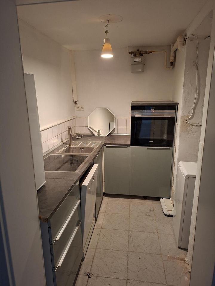 Zur Innenausstattung gehört eine von einem Vormieter übernommene Ikea-Einbauküche mit Ofen und Induktionsfeld. Ebenso Kühlschrank und Waschmaschine, für die ein Abstand von 1.000€ verlangt wird.