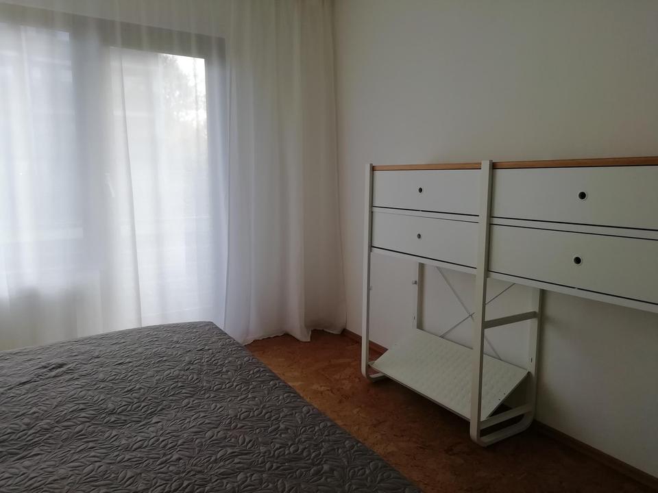 Die Wohnung ist hell und gut geschnitten. Wohn- und Schlafzimmer haben großflächige Fenster. Alle Zimmer sind mit pflegeleichtem Laminatboden ausgestattet. Das Badezimmer verfügt über eine große Badewanne und eine bodenebene Dusche mit Regenbrause. Ein Waschmaschinenanschluss ist vorhanden.