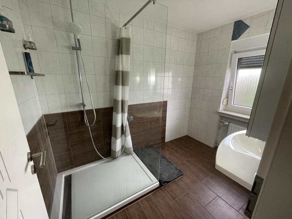 Das Badezimmer ist modern ausgestattet und verfügt über alle notwendigen Annehmlichkeiten. Zusätzlich gibt es ein separates WC, was den Komfort der Wohnung erhöht.