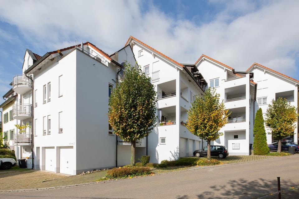 Zwei Balkone – einer zur Südseite, einer Richtung Westen – bieten angenehme Sonnenzeiten und einen schönen Blick. Zur Wohnung gehören eine Garage mit direktem Zugang zum Keller und Waschraum sowie zwei Stellplätze. Ein Aufzug ist aktuell in Planung. Die Wohnung ist ab sofort bezugsfertig.