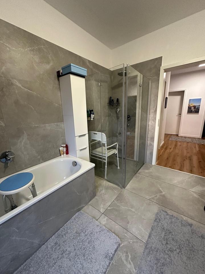 Die Wohnung beinhaltet einen offenen Wohnraum in dem auch der Küchenbereich liegt. Die vorhandene Küche kann von den Vormietern übernommen werden. Dazu gibt es 3 Schlafzimmer und 2 Terrassen .
