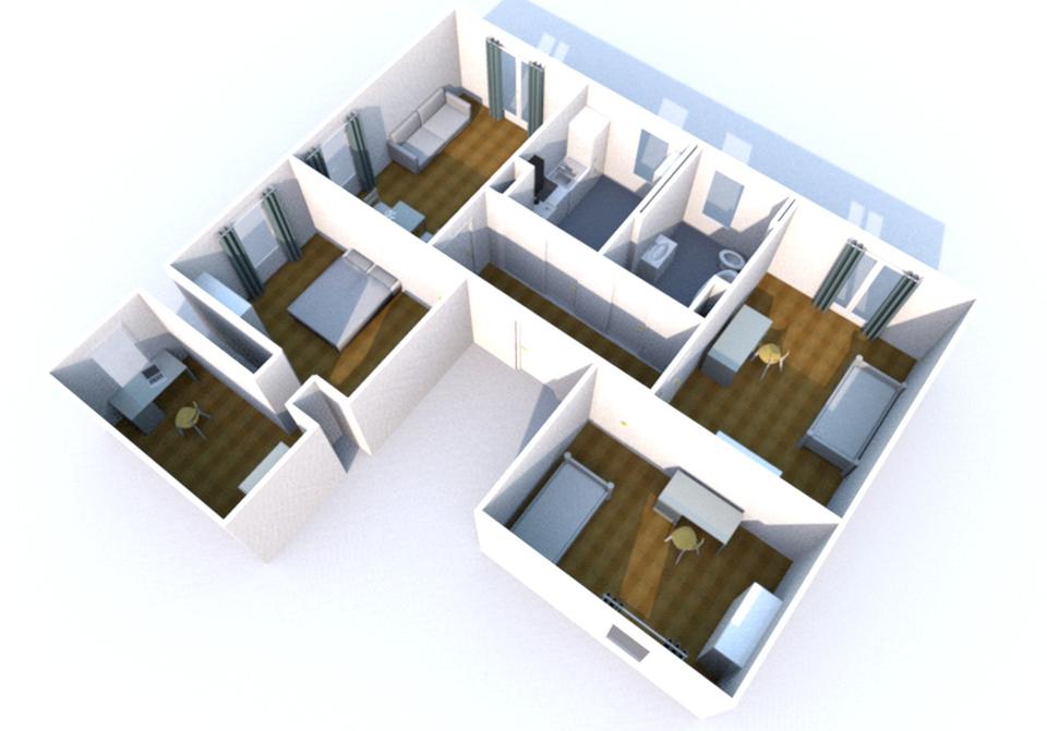 Die Wohnung verfügt über 4,5 Zimmer aufgeteilt in Wohnzimmer, drei Schlafzimmer, ein Arbeits- oder Ankleidezimmer, Flur, Küche sowie ein Bad mit Wanne, WC und Waschtisch. Zur Wohnung gehört ein Gartenanteil, ein eigener Schuppen sowie ein Parkplatz inkl. Ladestation für Ihr E-Auto.