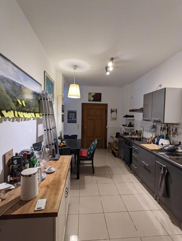 Die Wohnung im DG hat sowohl einen effizienten und gleichzeitig auch einen besonderen Grundriss. Im Bad stehen eine Badewanne sowie eine Dusche zur Verfügung. Weiterhin verfügt das Bad über eine elektrische Fußbodenheizung, Die liebevoll aufgearbeiteten Türen geben der Wohnung ein besonderes Flair. Für die hauseigene Satellitenanlage, werden im Monat zusätzlich 5,00 € berechnet. Ein DSL- Anschluss in der Wohnung ist möglich. Die Wohnung verfügt über einen eigenen Waschmaschinenraum, welcher sich im Treppenhaus ½ Etage tiefer befindet. Zur Wohnung gehört ein Abteil im Dachboden. Die Nutzung des Kamins kann wegen einer sich ggfs. ändernden gesetzlichen Rahmenbedingung nicht über die Mietdauer garantiert werden.