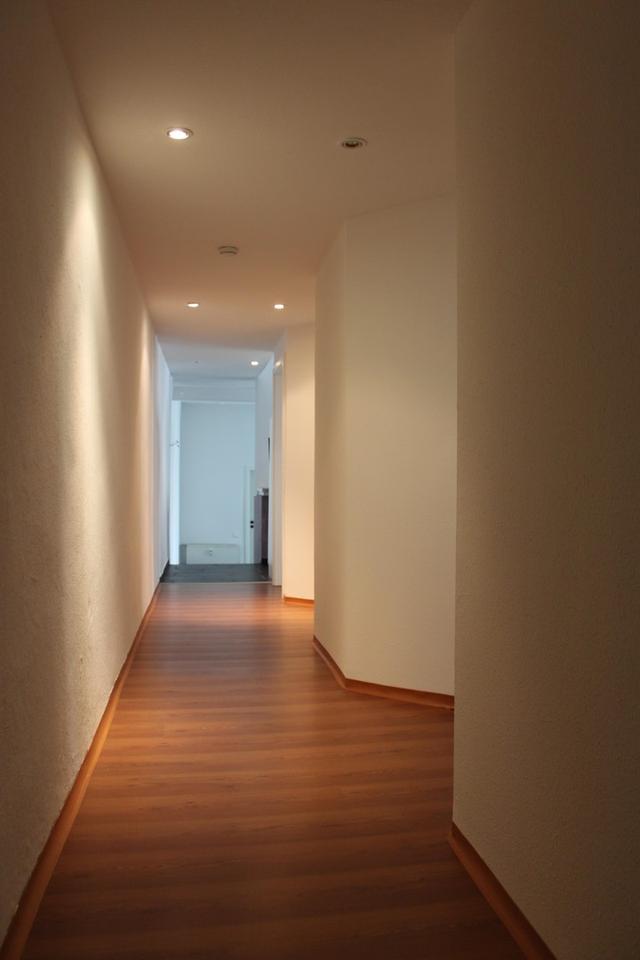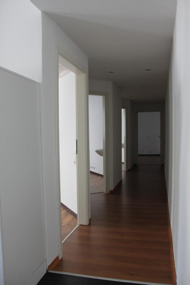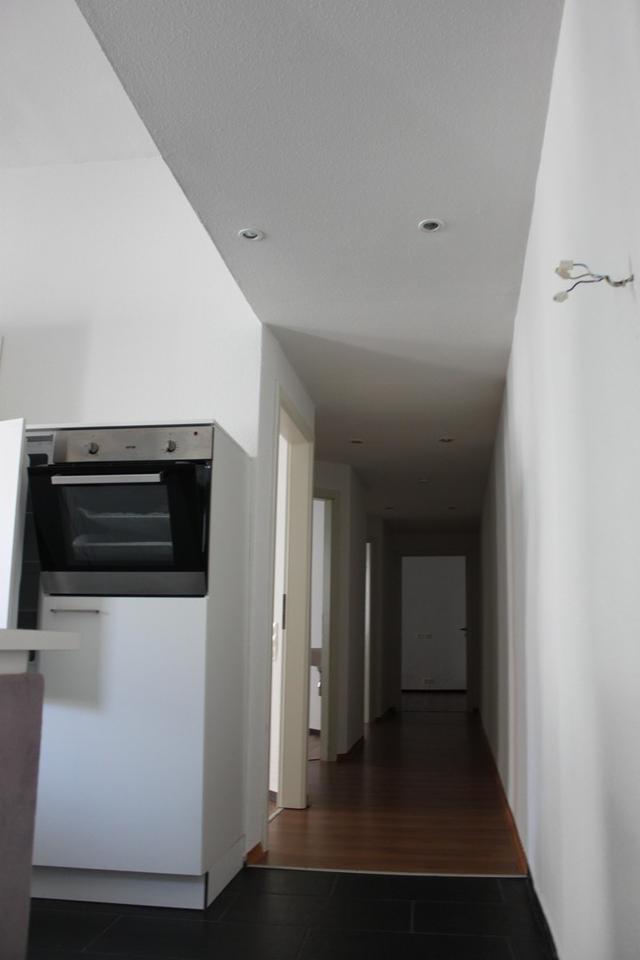 Helle Räume mit großzügigem Fensterlicht in Rauhfaser mit hochwertigem, strapazierfähigem Laminatböden in den Zimmern. Dunkle Steingut im Wohn- und Küchenbereich.