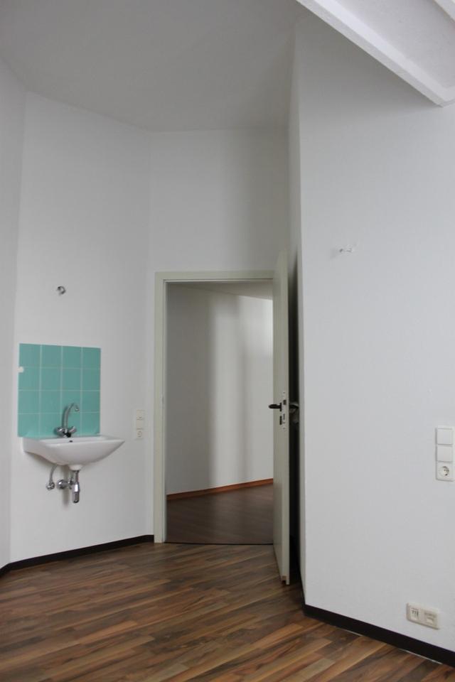 Die Wohnung liegt ruhig im Innenhof-Atrium des Nikolaihofes -einer ehemaligen Stadtfabrik- im 1. OG. Der Zugang erfolgt direkt aus dem Innenhof.