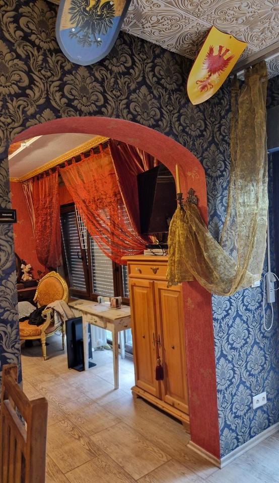 Die Hauptwohnung besteht aus 5,5 Zimmer, 149 qm Wohnfläche. Aufgeteilt in EG mit 115 qm: Bad, sep. WC, Wintergarten mit Kamin, Wohnzimmer mit schönem Erker, Kamin, Esszimmer, Schlafzimmer mit Ankleidezimmer. Zugang zum Wintergarten durch Wohnzimmer und Ankleidezimmer. Zugang zum Garten durch Wintergarten und Schlafzimmer.