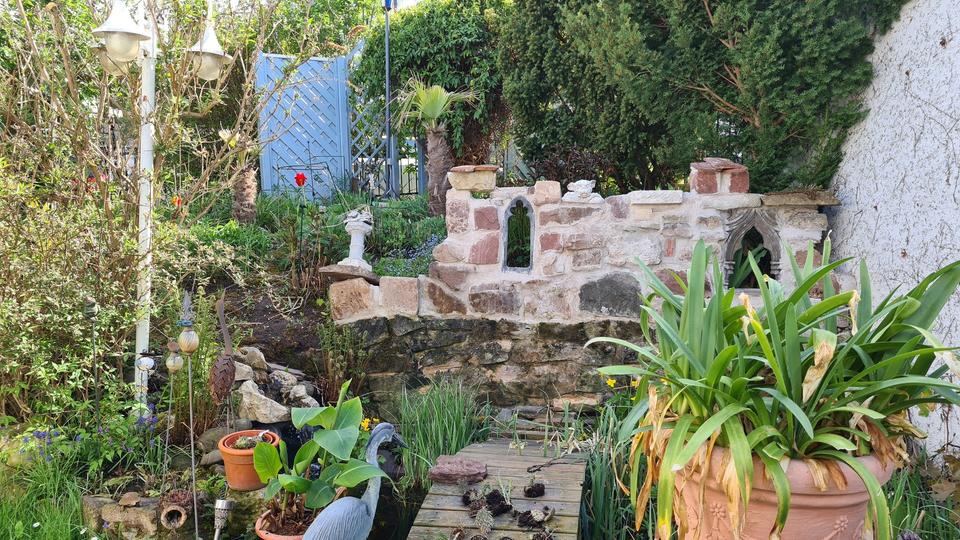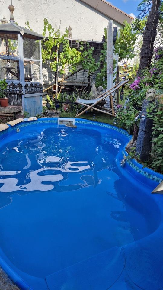 Wunderschöner Garten mit Pool und Gartenteich, Gartenhaus und Grill.