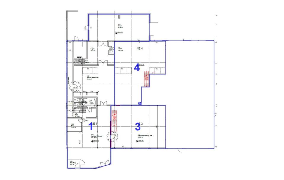 • Fläche 4 – 176,50 m²: Werkstatt + Lager + 1. OG