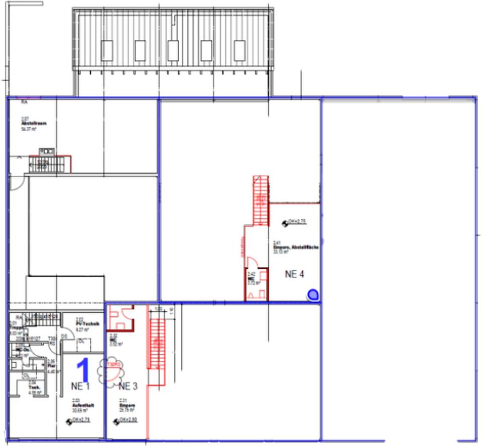 • Fläche 2 – 175 m²: Lager hinten + Nebenbereiche + 1. OG