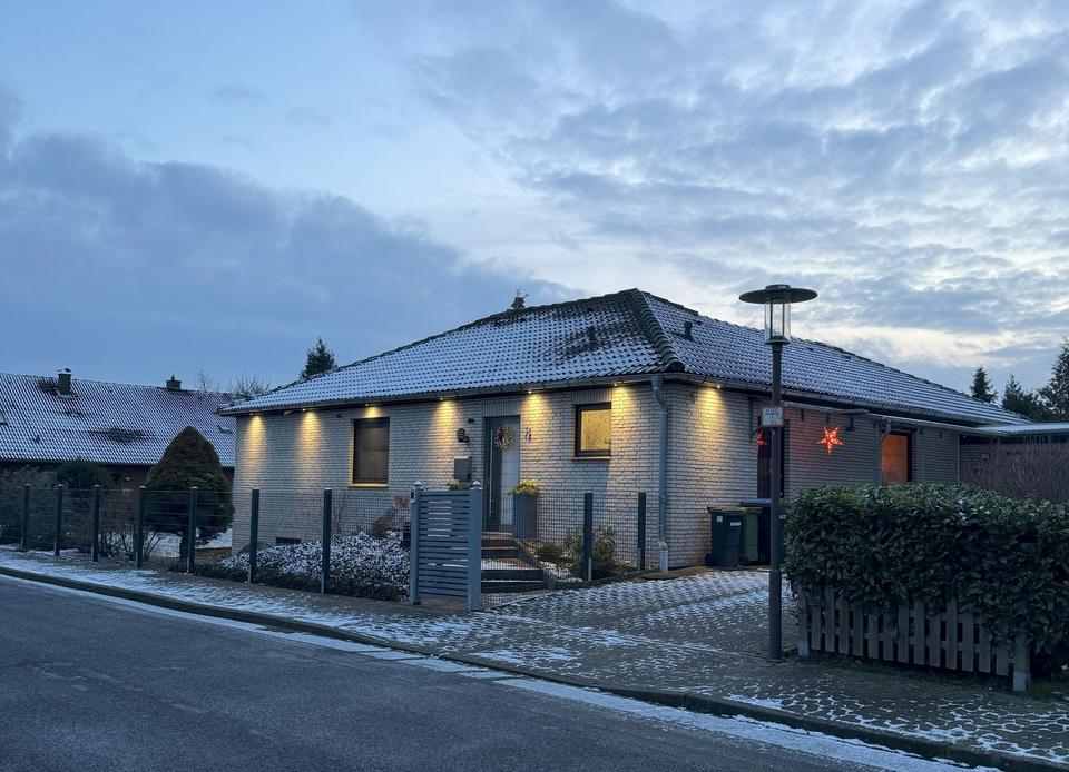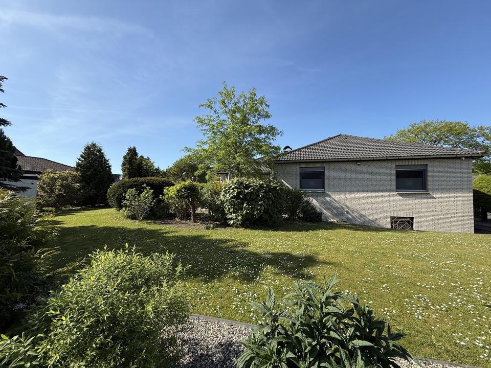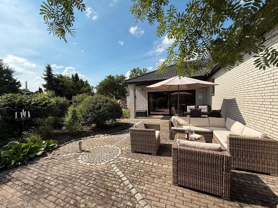 Dieses wunderschöne Einfamilienhaus wurde 1979 im Bungalowstil massiv erbaut und verklinkert. Es präsentiert sich in einem sehr gepflegten Zustand und befindet sich auf einem ca. 966 m² großen Grundstück in ruhiger, bevorzugter Randlage, eingebettet in einen liebevoll angelegten Garten mit uneinsehbarer Terrasse in Südwest Ausrichtung.