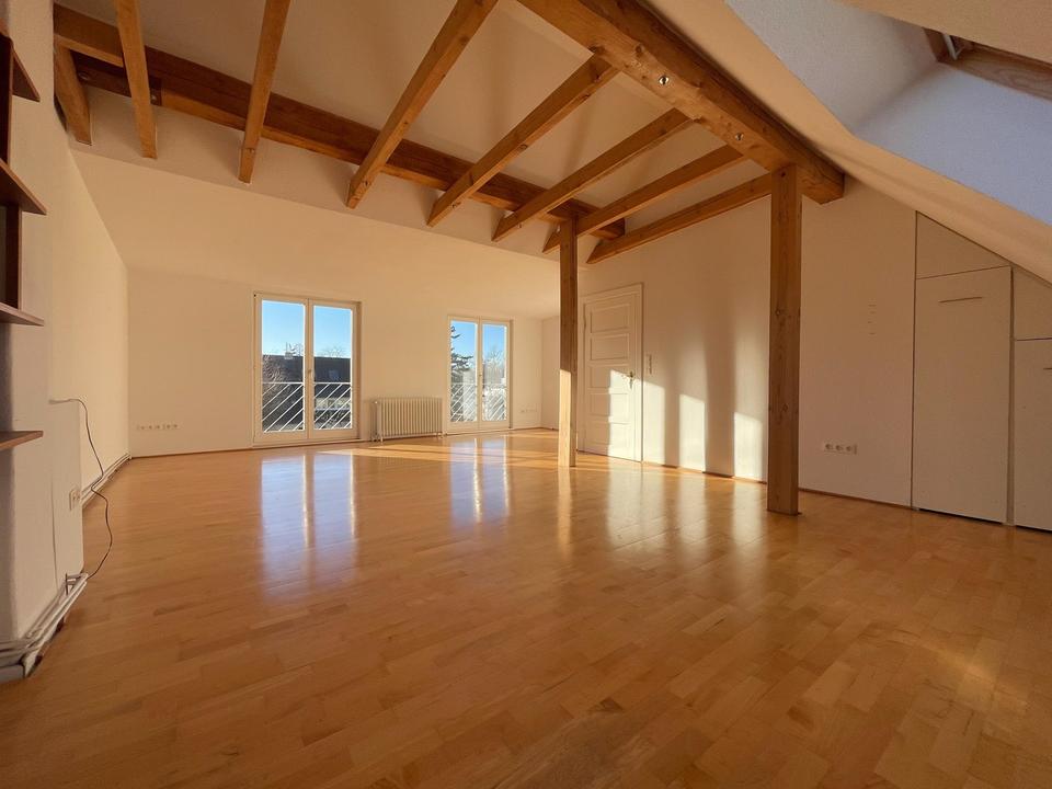 Im Dachgeschoss befindet sich ein großes lichtdurchflutetes Studio, das sich über die gesamte Grundfläche erstreckt.