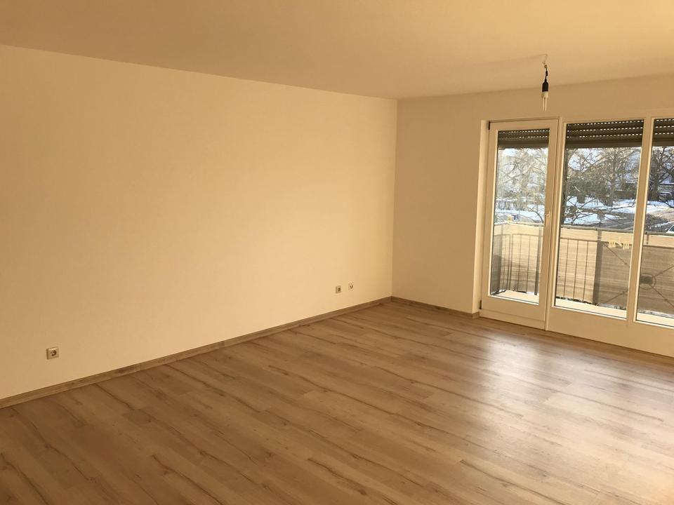 Wohnbereich mit Wohlfühlfaktor: Hochwertiger Laminatboden und ein durchdachter Schnitt bieten die perfekte Leinwand für Ihre individuellen Einrichtungsideen. Der angrenzende Balkon erweitert Ihren Wohnraum ins Freie.