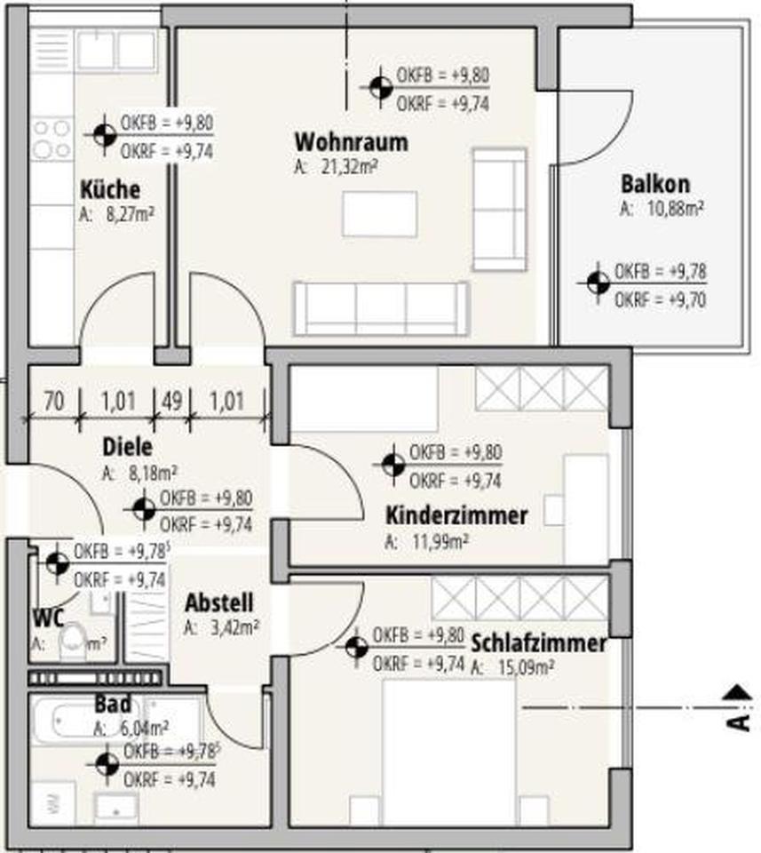 Balkon, Keller, Fahrstuhl, Vollbad, Gäste-WC, Fliesen