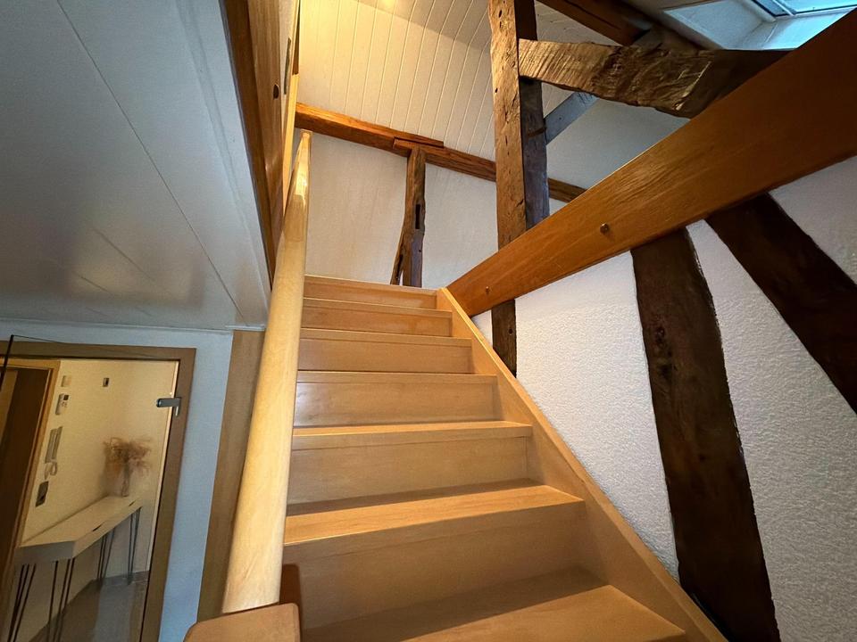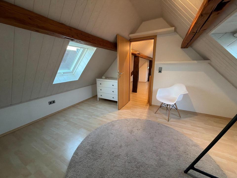Im ersten Obergeschoss stehen neben Küche und Bad zwei gut geschnittene Räume zur Verfügung, die bislang als Wohn- und Arbeitszimmer genutzt wurden. Das Dachgeschoss beherbergt das Schlafzimmer sowie einen zusätzlichen Raum, der sich ideal als Ankleide, Homeoffice oder Gästezimmer eignet.