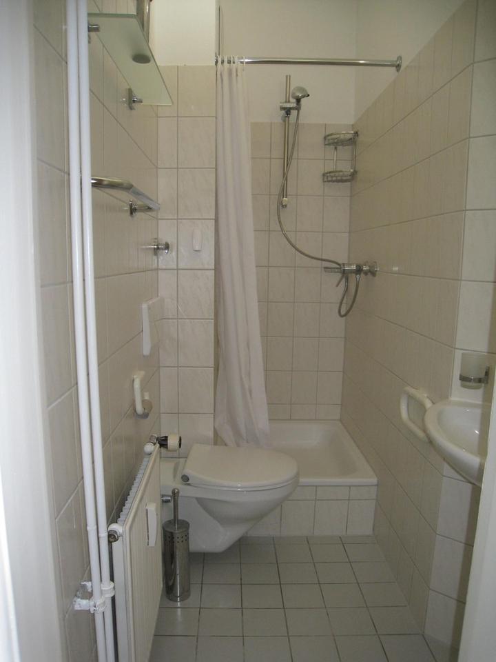 Kleine EBK, Duschbad, Fußboden: Holzdielung