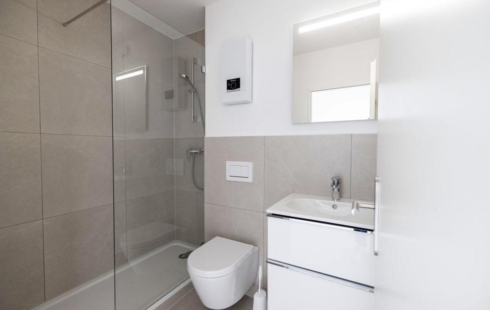 Das Duschbad wurde zudem modern und mit weißen Sanitärobjekten eingerichtet.