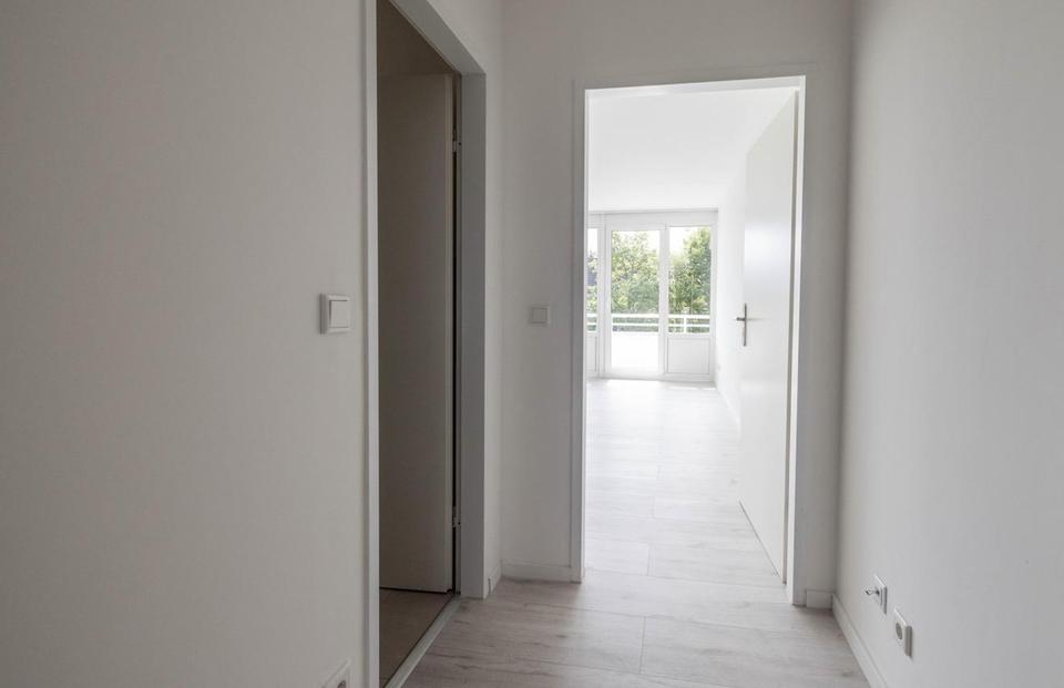 Die in 2025 vollständig renovierte Wohnung befindet sich in der ersten Etage des Mehrfamilienhauses in Kaarst. Das in 1975 erbaute Haus beherbergt insgesamt 9 Wohnungen, drei pro Etage, und verfügt über eine Tiefgarage.