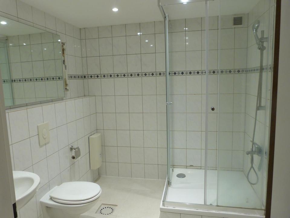 Ein weiteres weiss gefließtes großes Bad mit Dusche, WC und Waschbecken befindet sich ebenfalls im Keller.