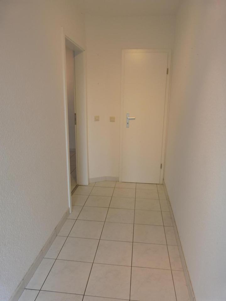 Die Wände sind mit Rauhfaser beklebt und weiss gestrichen