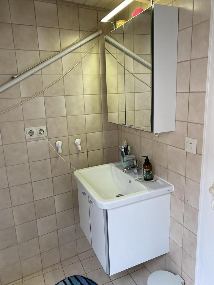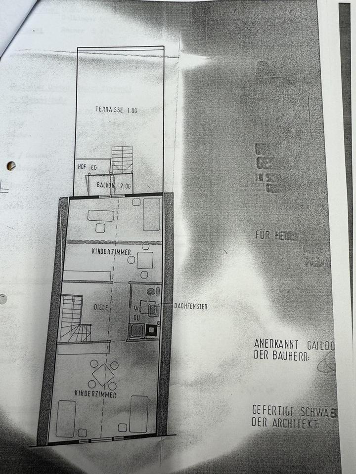 Im 1.OG steht eine helle 3-Zimmer Wohnung (64qm) zur Verfügung.Von dort geht es auf eine riesige Dachterrasse (43 qm), diese wird von den Mietern im 1.OG und 2.OG gemeinsam genutzt (Aufteilung ca.3/4 Wohnung 2.OG, 1/4 Wohnung 1.OG.
