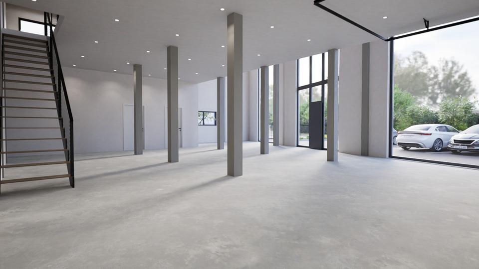 Ab Sommer 2026 entstehen hochwertige, moderne Ausstellungs- und Gewerbeflächen über zwei Etagen mit großzügigen Fensterfronten für optimale Sichtbarkeit und Lichtverhältnisse.