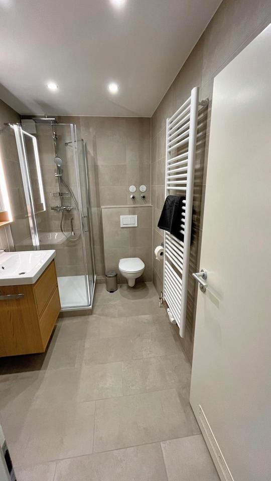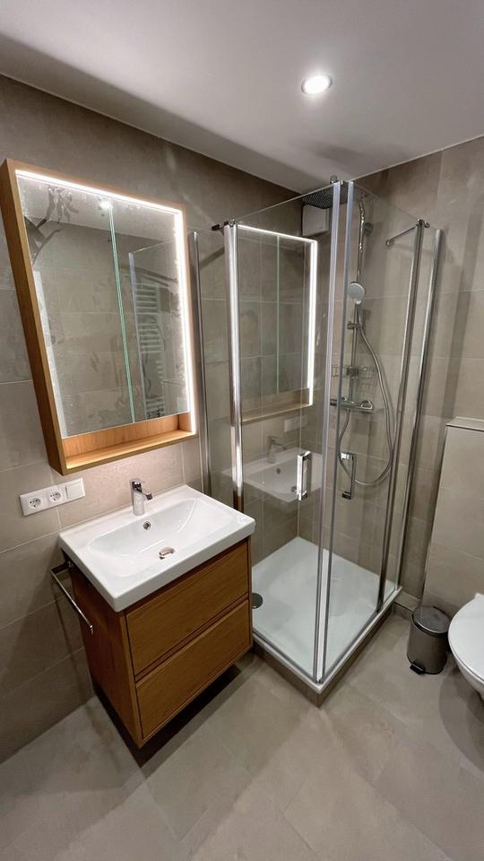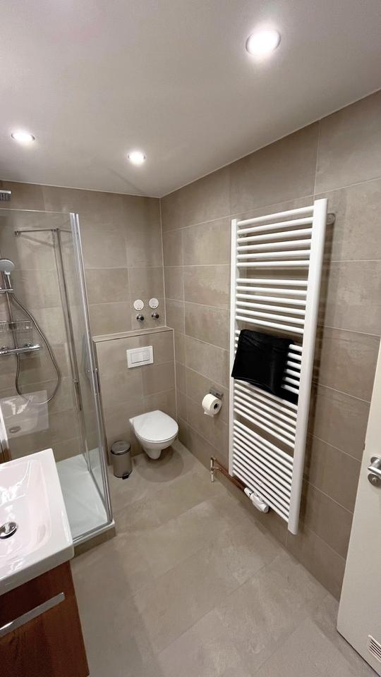 Das Badezimmer wurde 2024 komplett kernsaniert. In diesem Zuge wurde auch ein Großteil der Elektrik erneuert und ein neuer Sicherungskasten installiert.