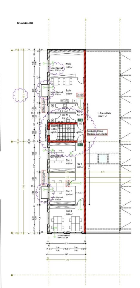 Freiflächen können flexibel dazu gemietet werden. Ebenso können im Untergeschoß 636,82qm Hallenfläche und 74,69qm Bürofläche zusätzlich angemietet werden.