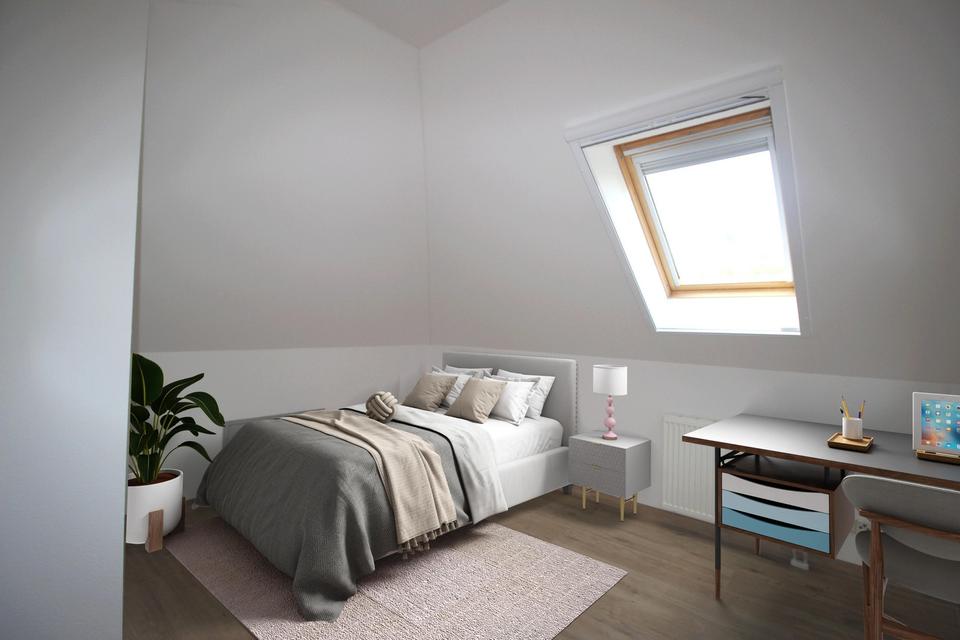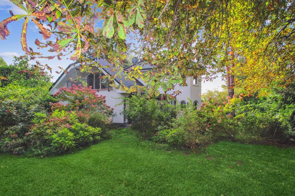 Im Obergeschoss stehen Ihnen zudem zwei weitere Schlafzimmer zur Verfügung. Einer der Räume verfügt über einen Balkon, von dem aus Sie den Blick über das weitläufige Grundstück schweifen lassen und die Enten auf dem See beobachten können – ein echtes Naturerlebnis direkt vor Ihrer Tür.