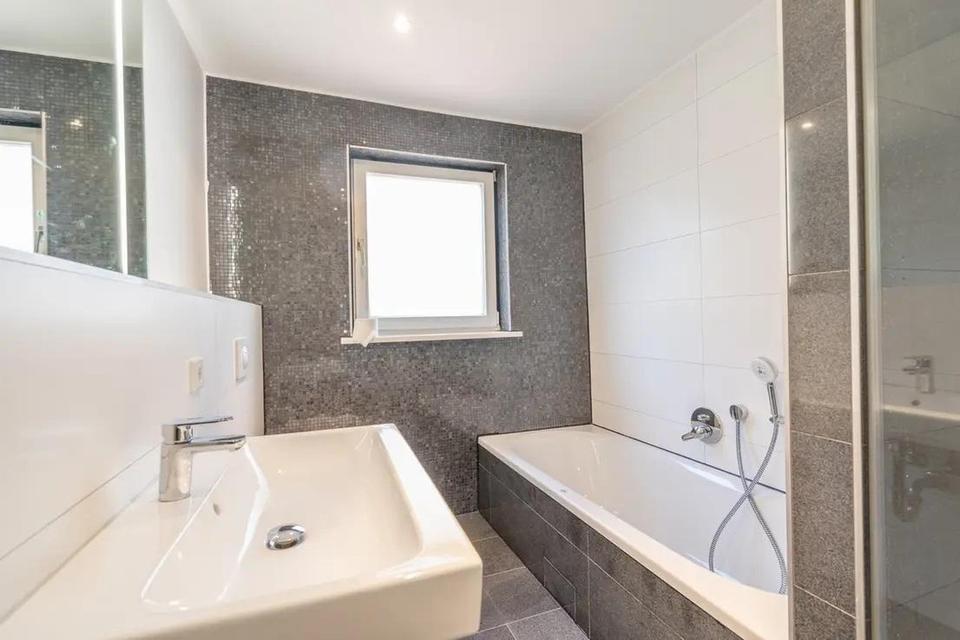 Das 2. Obergeschoss bietet neben einem gemütlichen Wohnzimmer auch Platz für ein Homeoffice. Das großzügige Badezimmer mit Fenster ist ausgestattet mit Dusche, Badewanne, Handtuchheizkörper und hochwertigen Sanitärelementen – eine echte Wohlfühloase.