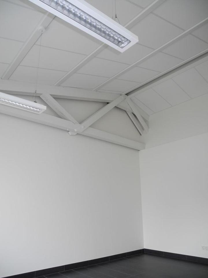 Der nach oben offene Dachstuhl und die im 5 Meter Raster verlaufende, sichtbare Tragkonstruktion unterstreichen den Loftcharakter dieser Etage.