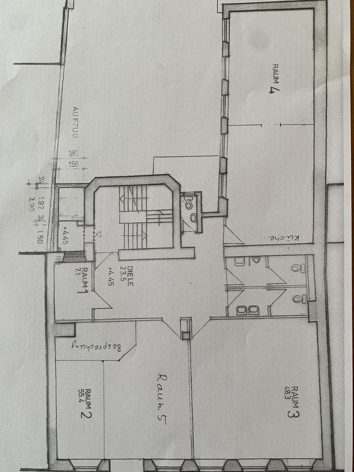Hier könnten drei große Räume (ca. 48 qm, 55 qm und 47 qm) als Unterrichtsräume entstehen.