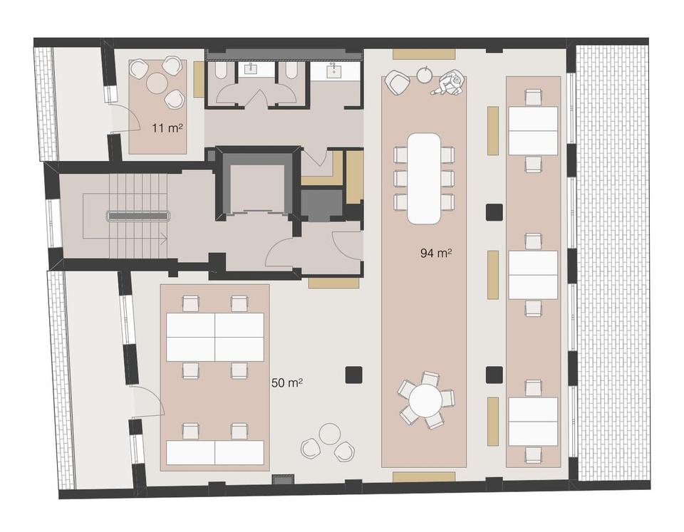 • Zusätzlich im 7. Obergeschoss: anmietbare Konferenz- und Veranstaltungsfläche für Meetings, Workshops oder Präsentationen
