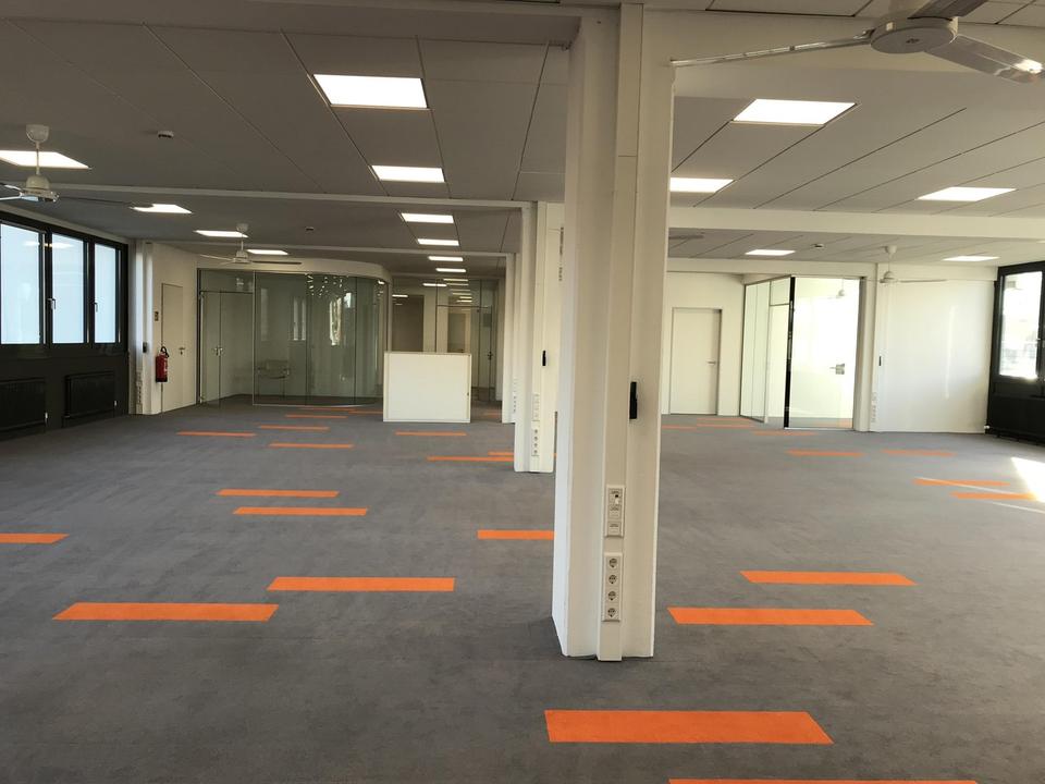 Die angebotene Fläche befindet sich im 3. OG und ist aufgeteilt in ein Großraumbüro sowie mehrere z.T. mit Glastrennwänden abgetrennte Büroräume in unterschiedlichen Größen, Besprechungsräume, Wartebereich, Teeküche, Abstellraum.