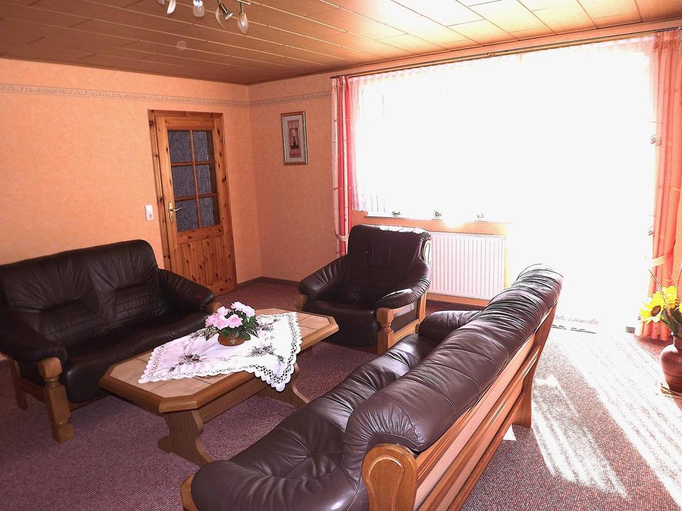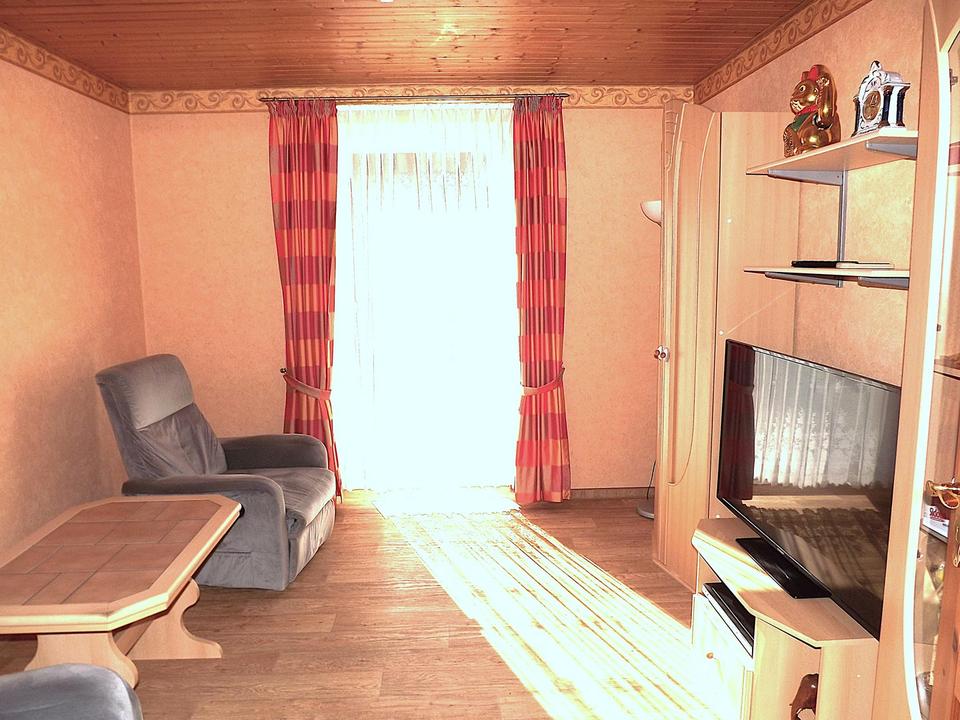 Wohnzimmer mit Anschluss zum Fernsehempfang und direkten Zugang zur Süd-West Terrasse