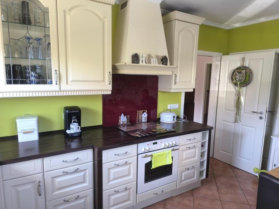 • Landhaus-Einbauküche incl. Elektrogeräte; weiße Kassetten-Zimmertüren