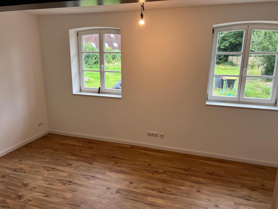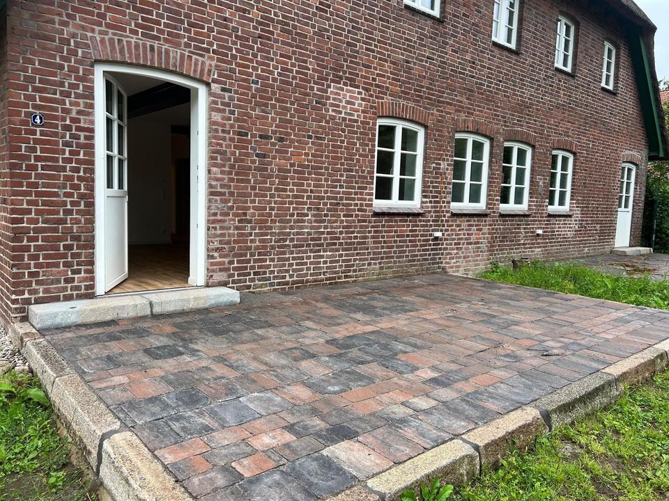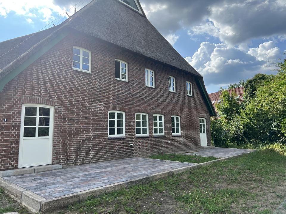 Die beiden baugleichen und gespiegelten angeordneten Wohnungen befinden sich im Erdgeschoss eines denkmalgeschützten und reetgedeckten Bauernhaus am beschaulichen Rahlstedter Dorfplatz. Die Wohnungen wurden im Oktober 2025 fertiggestellt. Eine der beiden Wohnungen ist noch verfügbar. Es handelt sich um einen Neubau in der historischen Gebäudehülle. Die Wohnungen verfügen über einen großzügigen Wohn- und Küchenbereich mit Zugang zur großzügigen gepflasterten Terrasse, sowie zwei Schlafzimmer und einen Hauswirtschaftsraum. Eine kompakte Einbauküche ist vorhanden. Bei dem hochwertigen Bodenbelag handelt es sich um Vinyl, im Bad und Hauswirtschaftsraum ist der Boden gefliest. Die Heizung erfolgt über eine Luft-Wärmepumpe mit Fußbodenheizung.