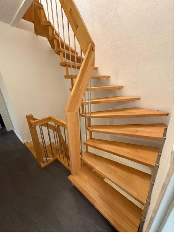 Neue Treppe aus massivem geöltem Buchenholz vom EG zum 1. OG.
