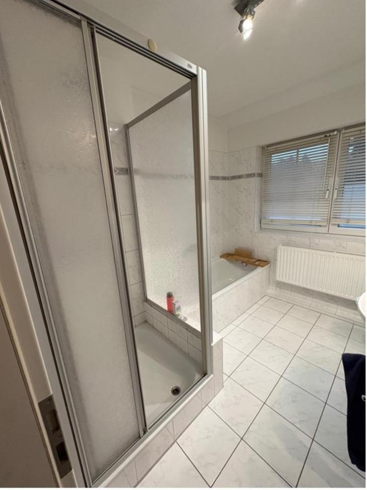 1. OG bestehend aus 3 Zimmern und Badezimmer gefliest mit Badewanne und Dusche.