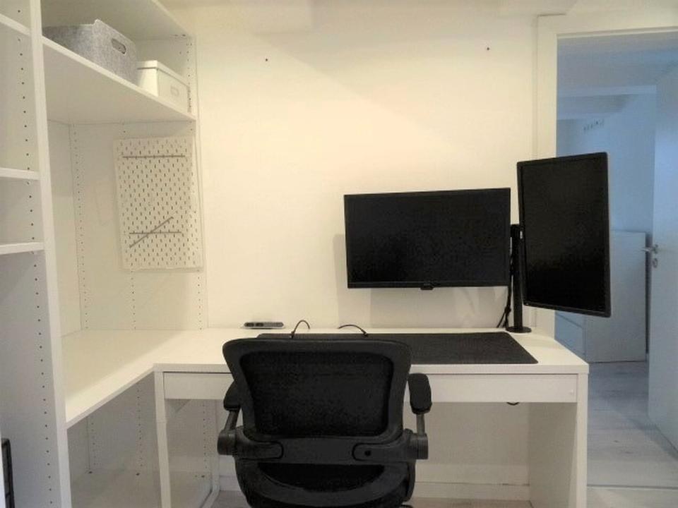 Das Schlafzimmer hat ein 160 x 200 cm großes Bett, eine Garderobe, Kommode, sowie eine Homeoffice Ecke.
