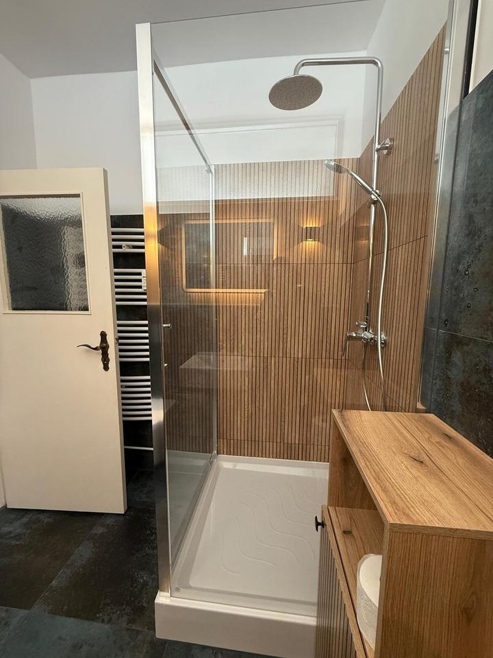 Das Schlafzimmer ist gemütlich und ebenfalls vollständig möbliert. Ein modern saniertes Badezimmer mit Dusche ist sehr gemütlich und stillvoll. Das Kellerabteil sowie ein Parkplatz runden dieses Angebot ab.