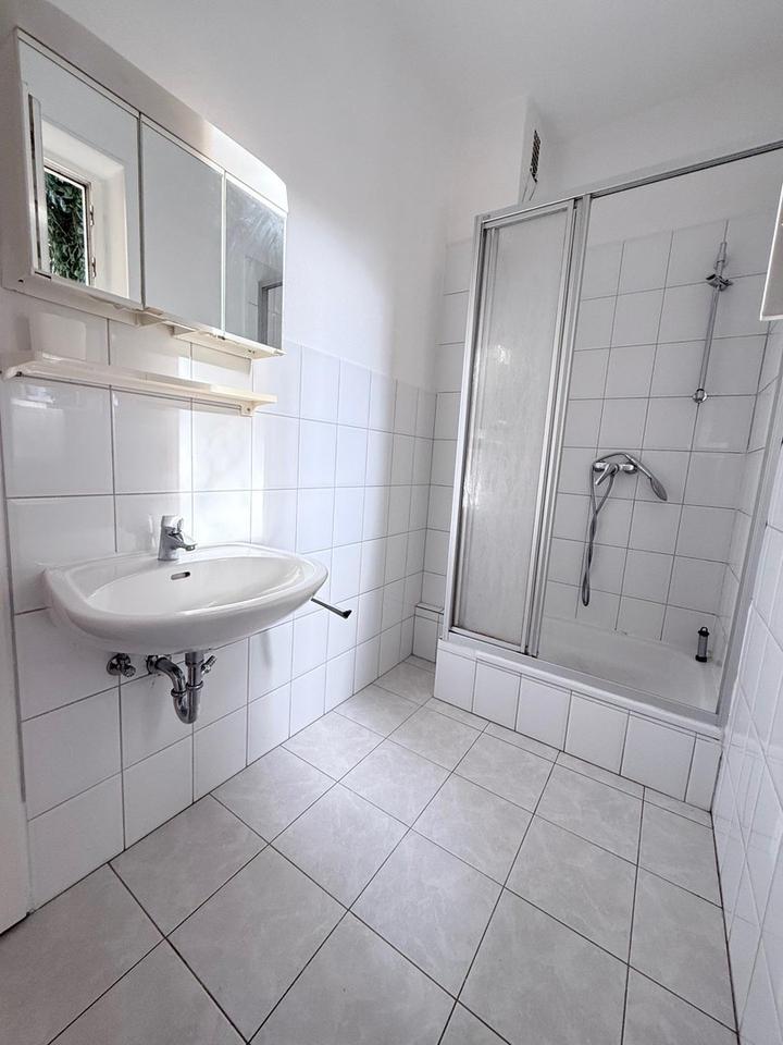 – Tageslichtbad mit Duschwanne, erneuerten Fugen, neuer Toilette und ohne alten Spiegelschrank