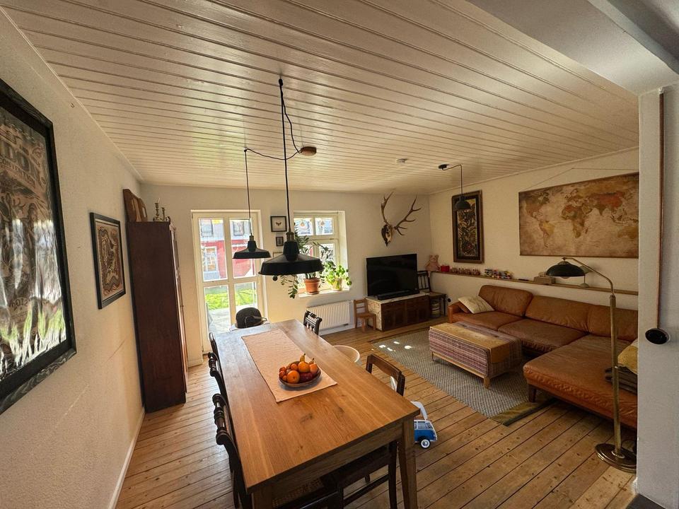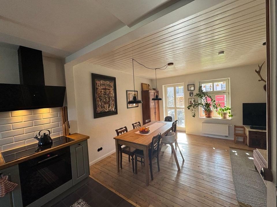 Dieses wunderschöne, denkmalgeschützte Reihenmittelhaus aus dem Jahr 1857 verbindet historischen Charme mit modernem Wohnkomfort. Auf drei Etagen und einer Wohnfläche von ca. 127 m² (nach DIN 277) bietet es eine einzigartige Atmosphäre, geprägt von hochwertigen Materialien und liebevollen Details. Die gemütliche Raumaufteilung umfasst 3,5 Zimmer, eine offene Küche, ein Badezimmer, ein Gäste-WC sowie zwei Kammern. Das Dachgeschoss ist vollständig ausgebaut und bereits so vorbereitet, dass hier problemlos ein zusätzliches Zimmer entstehen könnte.
