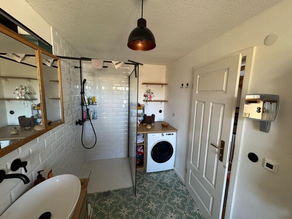 Besonders beeindruckend sind die stilvollen Details, die den Charakter des Hauses unterstreichen. Teilweise erhaltene Original-Dielenböden, edle Zementfliesen und hochwertige Eichendielen schaffen ein unverwechselbares Ambiente. Im Rahmen einer umfassenden Teilsanierung im Jahr 2022 wurden die Bäder, Böden und Türen erneuert. Zudem wurden originalgetreue Steckdosen und Lichtschalter aus Bakelit verbaut. Eine neue, hochwertige Küche ergänzt den modernen Wohnkomfort. 2023 wurde die Terrasse stilvoll mit Dielen aus thermisch behandelter Esche neu belegt, wodurch der Außenbereich zu einem besonderen Rückzugsort wurde.